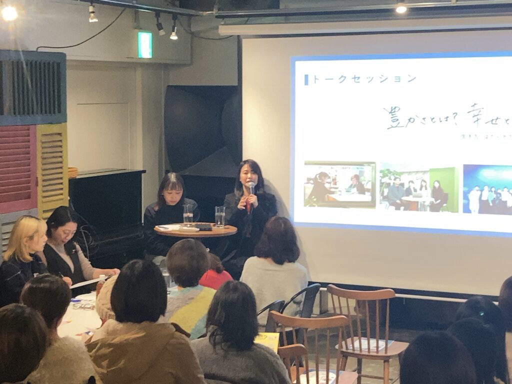 コーディネーターは髙田理世さん。登壇者の3名と一緒に、“豊かさ”という視点から、これまでの生き方や働き方について選択の瞬間やその時の迷い、決意などについてお話ししてくださいました。